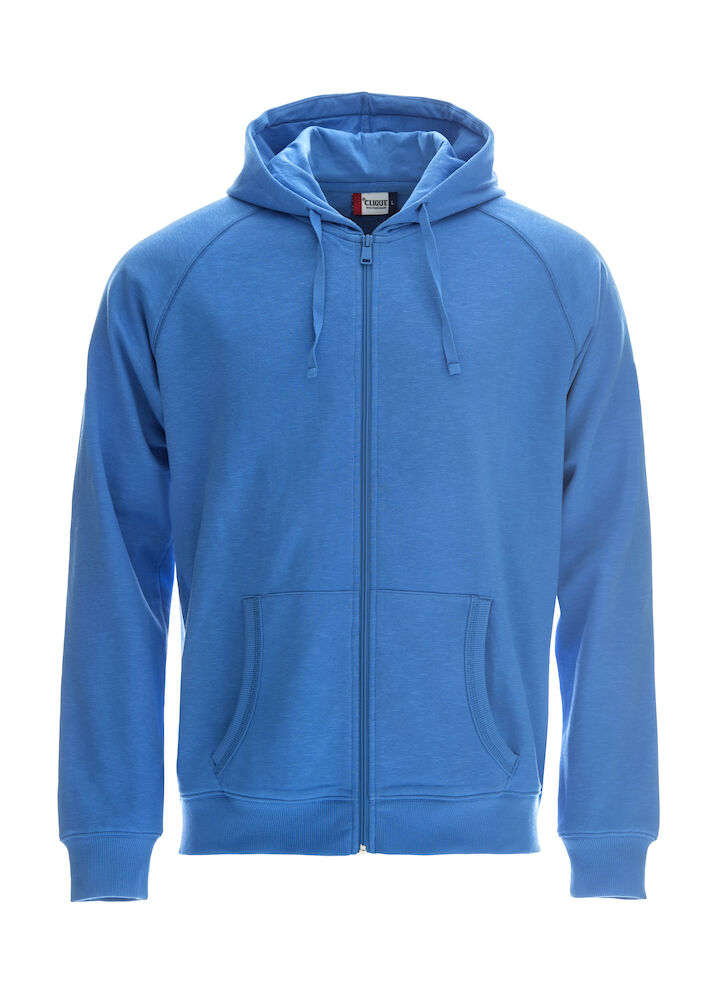 Hoodtröja med hel dragkedja. Bomullsslub blandad med polyester för en snygg melange effekt. Modern passform med något bredare muddar, raglanärm samt dekorativa flatlockssömmar., 80% slub bomull och 20% polyester, Herr, polar blå. OekoTex. Clique