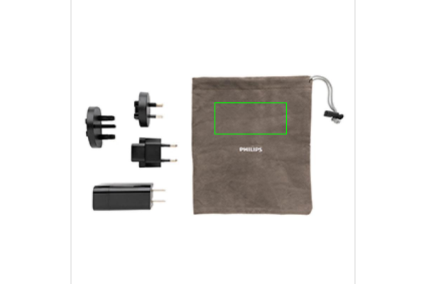 Philips ultrasnabb 30W PD reseladdare. Med praktisk förvaringspouch. Med 4 kontakter, integrerad USA-kontakt och föränderlig AU, UK och EU-kontakter. Input: 100-240V, 50-60Hz 0.7A Output USB A 5V/2.4A Type-C 5V/3A, 9V/2A, 12V/1.5A. Levereras i Philips giftbox.. ABS, svart, 133 g. 10 x 3 x 10 cm