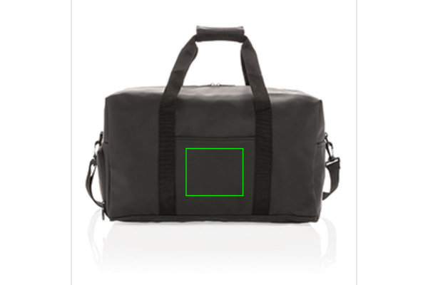 Weekend-duffel i smidig PU som passar lika bra för en tur till gymet som för att åka bort en helg. Minimalistisk design med ett fack på framsidan, stort huvudfack med ett mindre fack på insidan. På sidan av väskan finns ett praktiskt skofack. Kan bäras över axeln eller på tvären med de justerbara bärremmarna eller i handen med det rejäla bärhandtaget. Utsida 100% PU. Insida 100% 210D polyester. PVC-fri.. Reklamhuset24 erbjuder en snabb återkoppling och konsultation samt offert och gratis skissförslag samma dag.